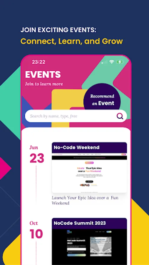 Stay informed about upcoming conferences, workshops, and networking opportunities related to no-code tools with the app's events area. Believing that community support and engagement are critical for success, it provides a platform for individuals to share their experiences, knowledge, and insights. By attending these events, expand your network, learn new skills, and gain inspiration for your digital ventures, making the community stronger through connections and access to valuable resources.