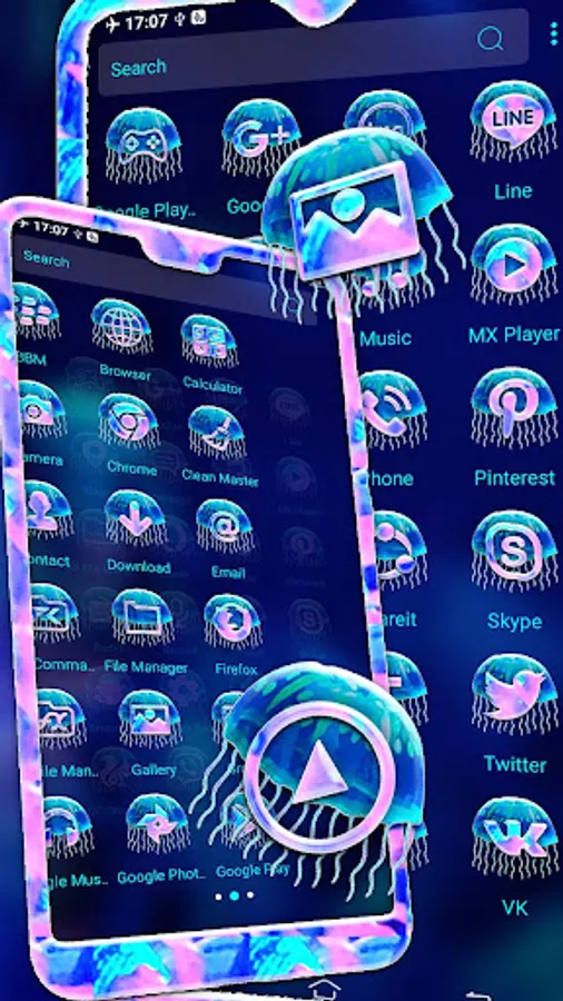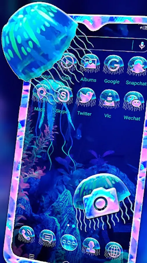 Try this Blue Jellyfish launcher theme for more fun. Unique Blue Jellyfish is designed in latest way. You must apply this Underwater Jellyfish launcher theme because every icon is crafted & designed by top designers to customize your phone.