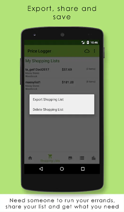 Create shopping lists, with Price Logger, keeping you organised, focused and on budget. Flexible options allow you to update your shopping lists on the go and add special notes for your list. Need to send someone on an errand? Export and share your list and help ensure you get exactly what you need.