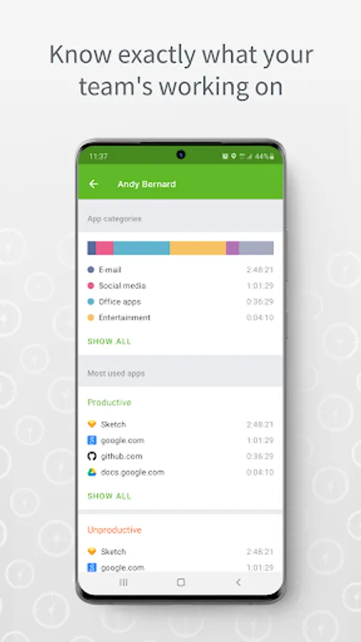 • Check your team's performance – the time tracker app will show you which projects or programs your team members are working on.
