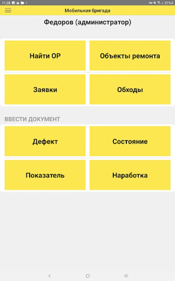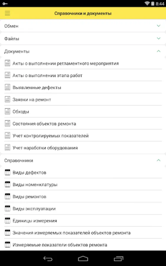 • Work offline (access to applications and bypass routes, information on the repair object, the ability to reflect the fact of work, the result of a bypass along the route, generate documents to record performance indicators).