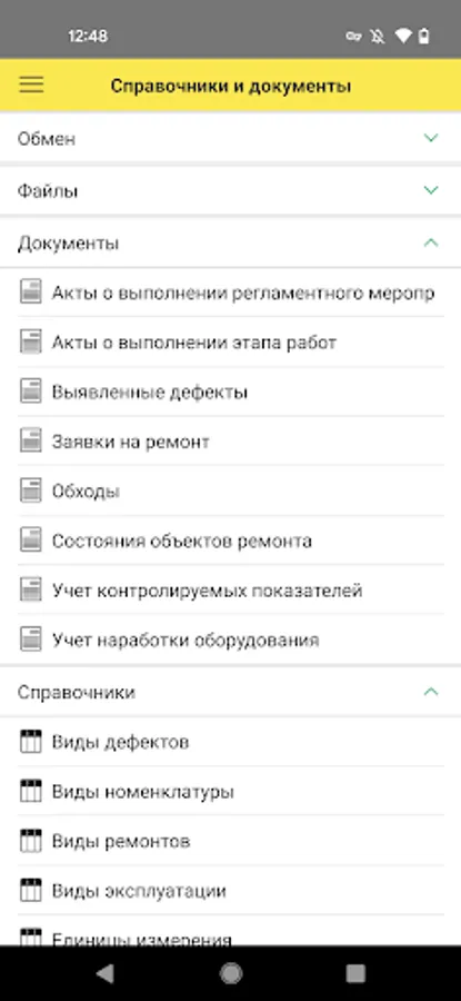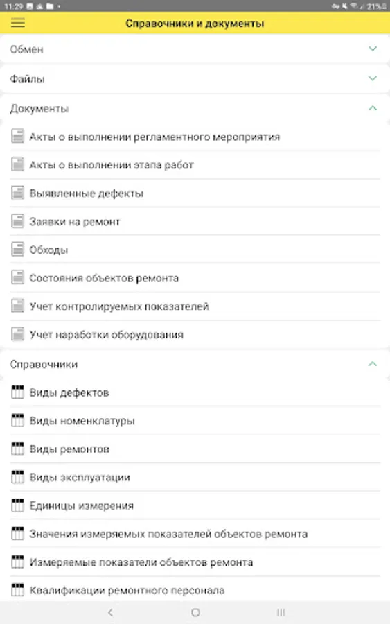 Users have access to information in the 1C: TOIR KORP system in order to receive repair assignments, lineman routes (orders for routine activities), necessary reference information, as well as promptly reflect the fact that work has been completed, transfer documents, audio and video files, photos, geo-coordinates , scanned barcodes, NFC tags of repair objects created on a mobile device into the 1C:TOIR KORP database.