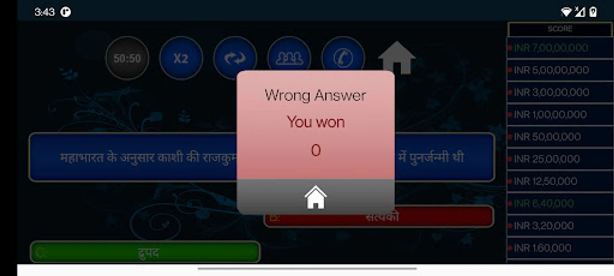 This game does not represent any official tv channel and we do not provide any real cash or cheque through this game. This is a simple Quiz type game only made for purpose of improve general knowledge of our users. Drop us an email if you have any dispute.