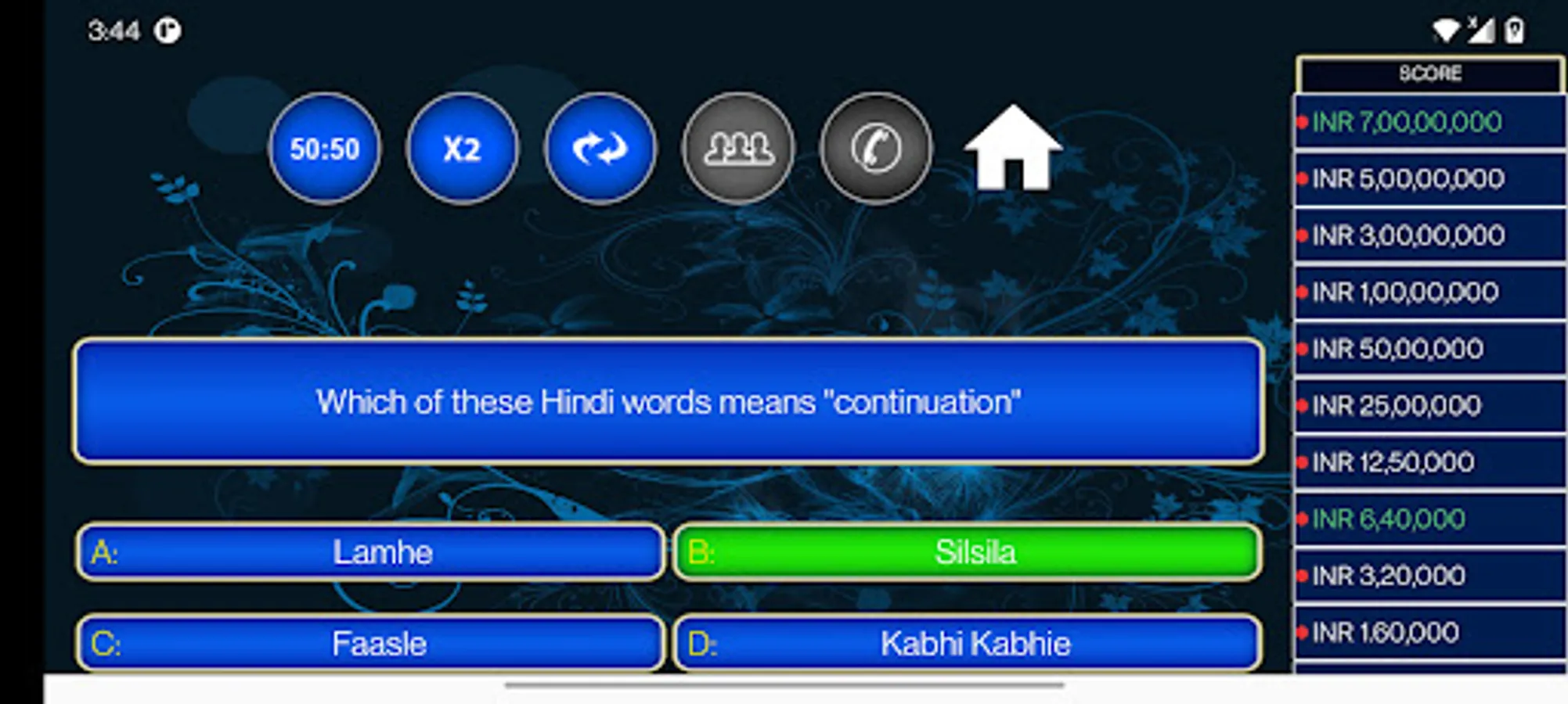KBC Quiz APP having Good User Interface. Best Sound Quality. This Kbc game is totally for entertainment & improving knowledge.