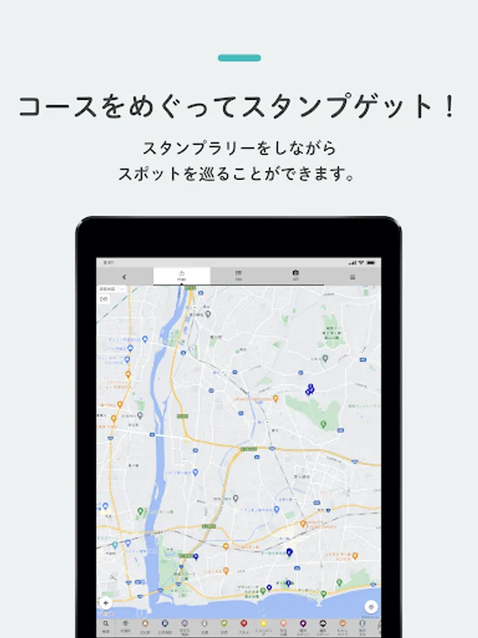 The "map" function allows visitors to learn about cultural heritage and tourist spots from their current location and provides directions to their destination. Additionally, the app is compatible with "Google Fit - Fitness Tracking" and displays the user's daily step count (not available on tablets). To display step count, users must select their Google account to use with the "Google Fit - Fitness Tracking" app. Failure to do so will prevent the step count from displaying.