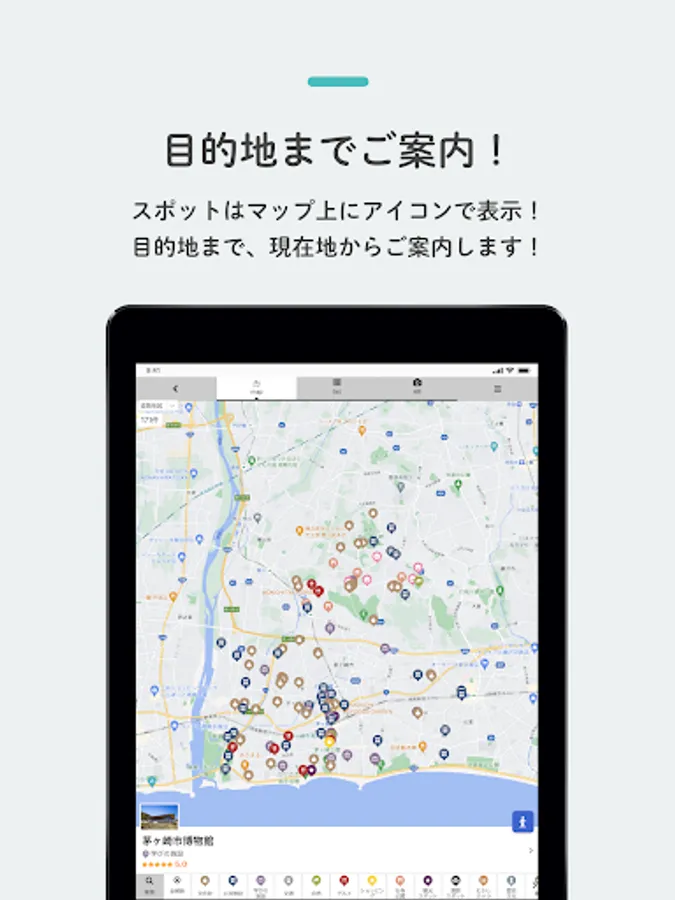 There are two features available: the "model course" function, which introduces various themed routes for visitors to explore Chigasaki City, and the "walking map" function, which guides visitors to their desired destination. An offline map is also available for viewing without an internet connection. Visitors are encouraged to explore Chigasaki City and discover its new attractions by selecting their preferred course from the themed routes and collecting stamps as they learn about the city's history.