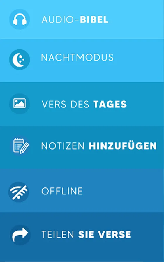 Download Bible in German for free and listen to the voice of God or read the verses. Be sure to stay tuned in and let us know about any bugs, and let us know if you have any questions, feature requests, or any other suggestions.