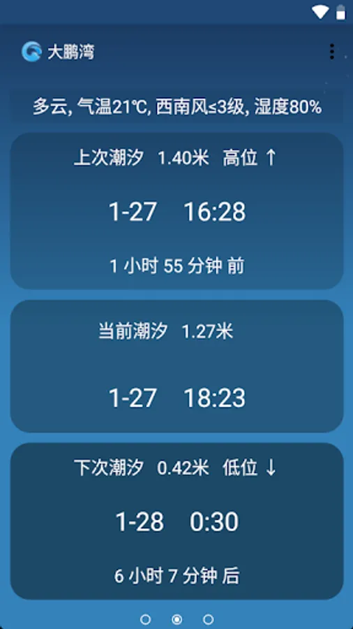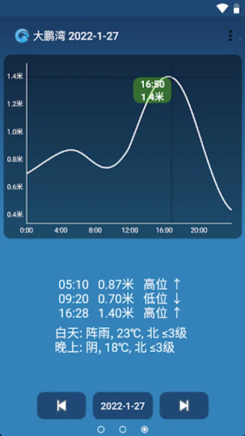 As a sea-fishing enthusiast, do you not know when the tide will ebb and flow when you go to the beach to fish? Missed fishing opportunity for nothing? Or you want to go to the beach and want to know when the tide will rise or fall? This app can help you! Open the application and select a location, you can view the time of the previous tide level and the height of the tide. In addition to viewing the real-time forecast data of the day, it also provides one-month tide forecast data. Historical data can also be viewed! No matter whether you turn on the data flow or connect to WIFI, the tide data will still be displayed in front of you, so don't worry about the weak signal of the mobile phone. It can also automatically locate the location closest to you, which is very convenient to use!