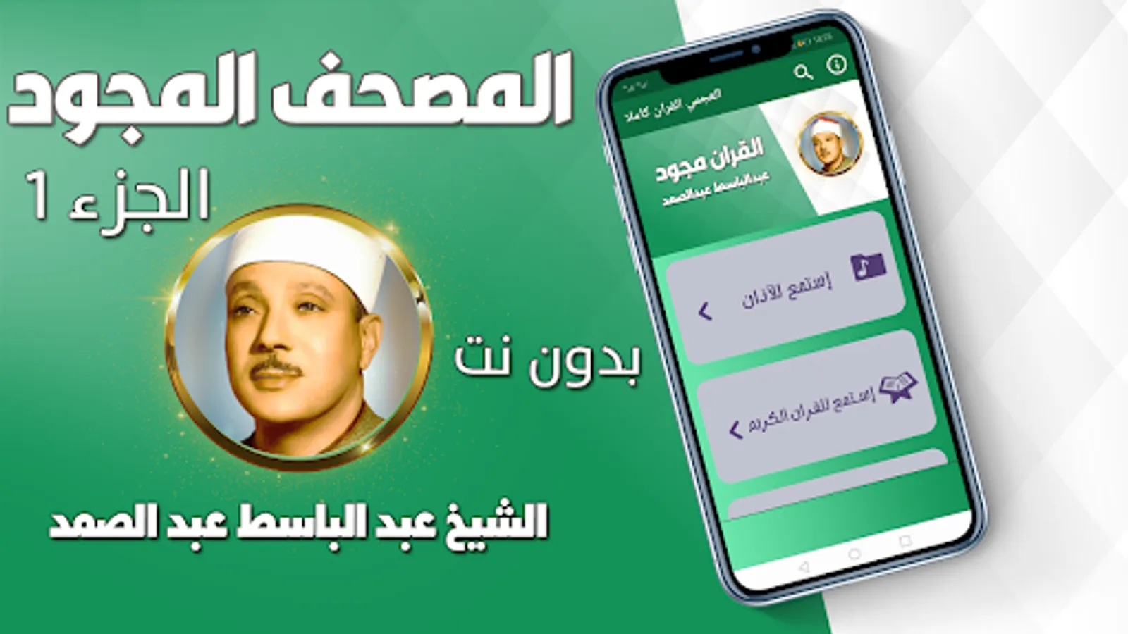 The application of intonation of the Noble Qur’an without the Internet includes Abdul Basit Abdul Samad, who is in your hands on the entire Holy Qur’an, a voice without the Internet, in the voice of Abdul Basit Abdul Samad, with high quality intonation without the net.