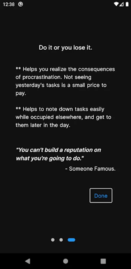 1. Helps you realize the consequences of procrastination. Not seeing yesterday's tasks is a small price to pay.