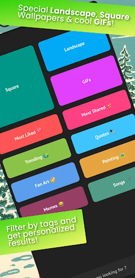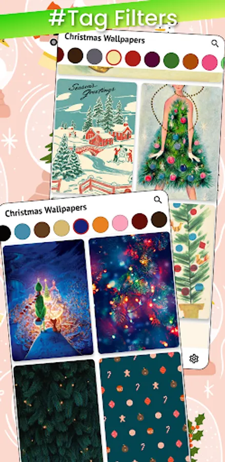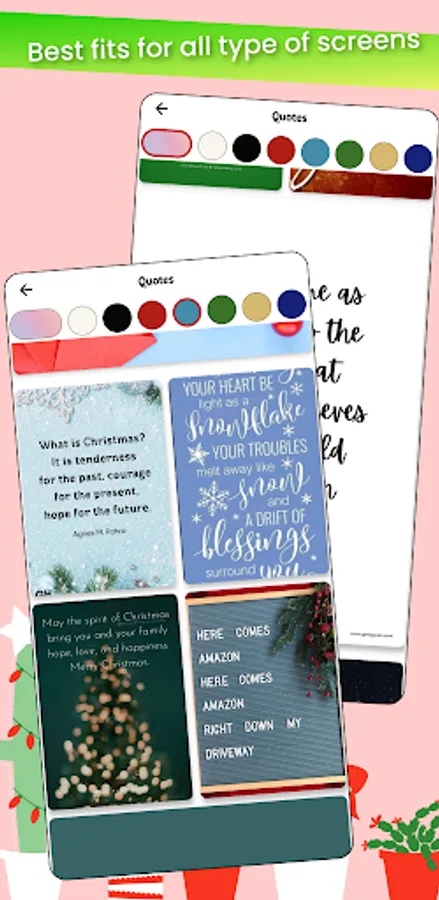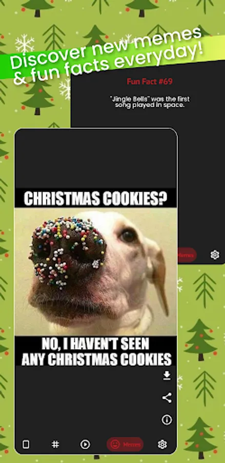 Christmas AIO app with Landscape, Portrait & Square, Color Sorted Christmas Wallpapers, categorized across various Tags, Hilarious Christmas Memes, Trending Christmas Videos, cool Christmas GIFs & lots of Christmas Fun Facts! presented into responsive and fast app UI ⚡