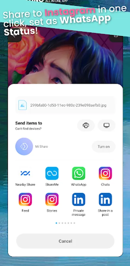 6. Click "Share" if you want to share the photo on WhatsApp, Facebook, Twitter, Messenger, Instagram, YouTube, etc.