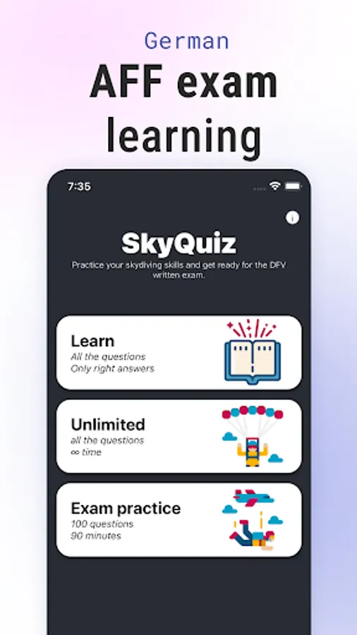 SkyQuiz | Skydiving AFF Exam Screenshots