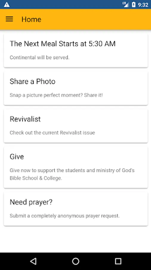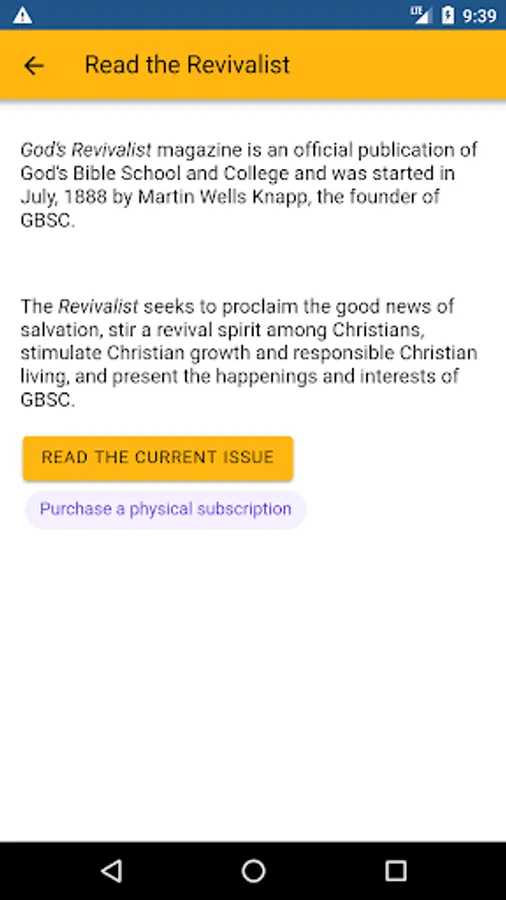 The Official GBSC App - Keep up to date with all of the happenings around God's Bible School and College. Find out what's for lunch in the cafeteria or be notified when there is a new Revivalist publication. The next time you find an interesting photo on campus, why keep it for yourself? Share it in the app!