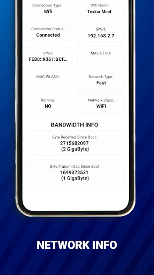 - Get network information like network connectivity info, network capability info & properties info.