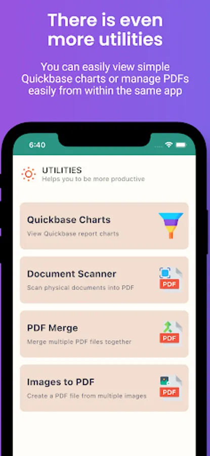 ** PDF Merge - Now merge multiple PDF documents from your phone into a single PDF document. Rearrange the document as per need. Organize and merge multiple documents as needed. Upload the PDF to Quickbase using the File Upload Plugin.