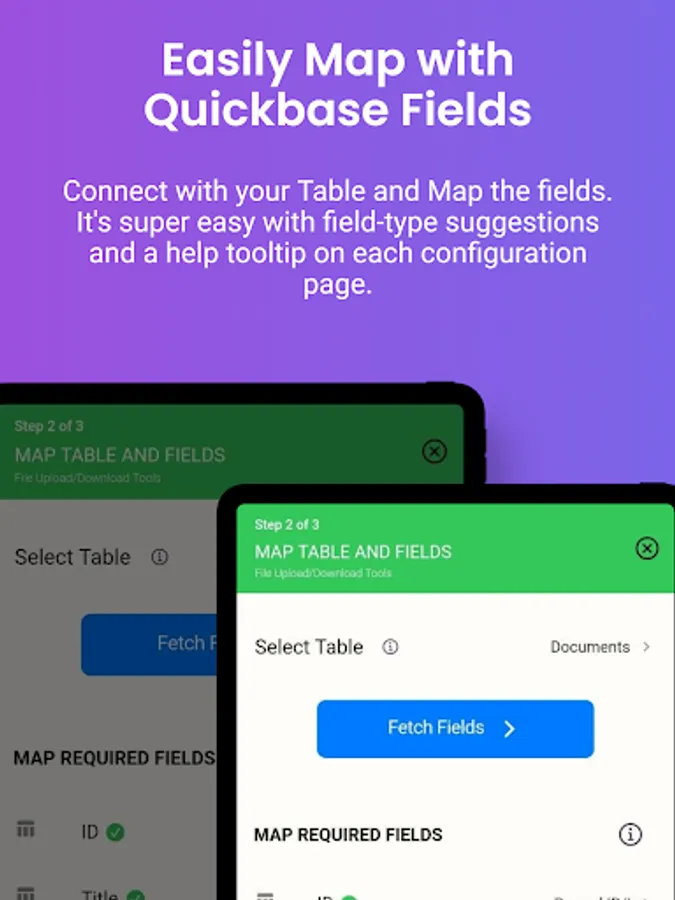Download a file from your Quick base application or Upload a file from anywhere in your device to your Quick-Base table.