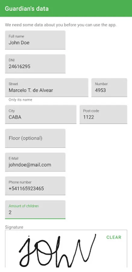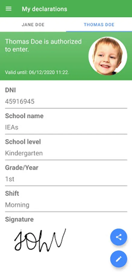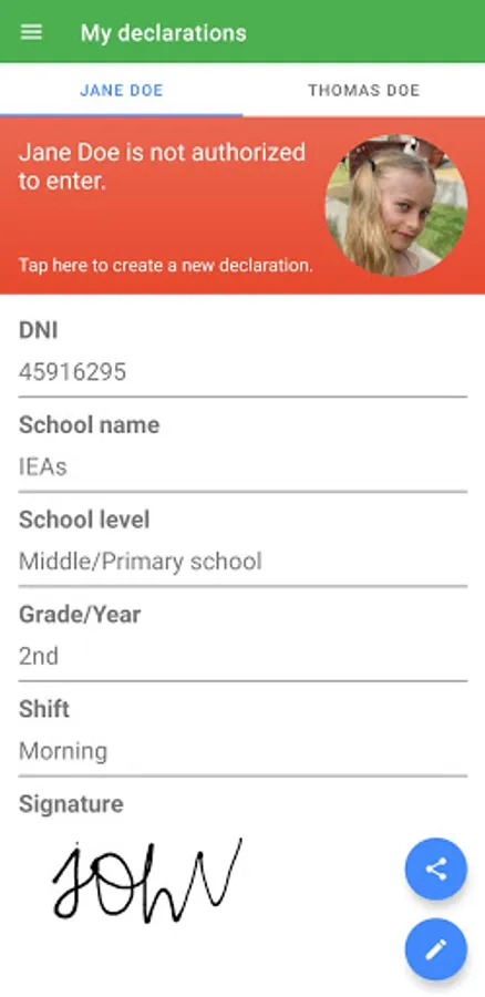 Use it to create sworn declarations with just one tap, avoiding so the posibility of forgetting to make it, or losing it before showing it to the school.