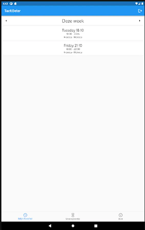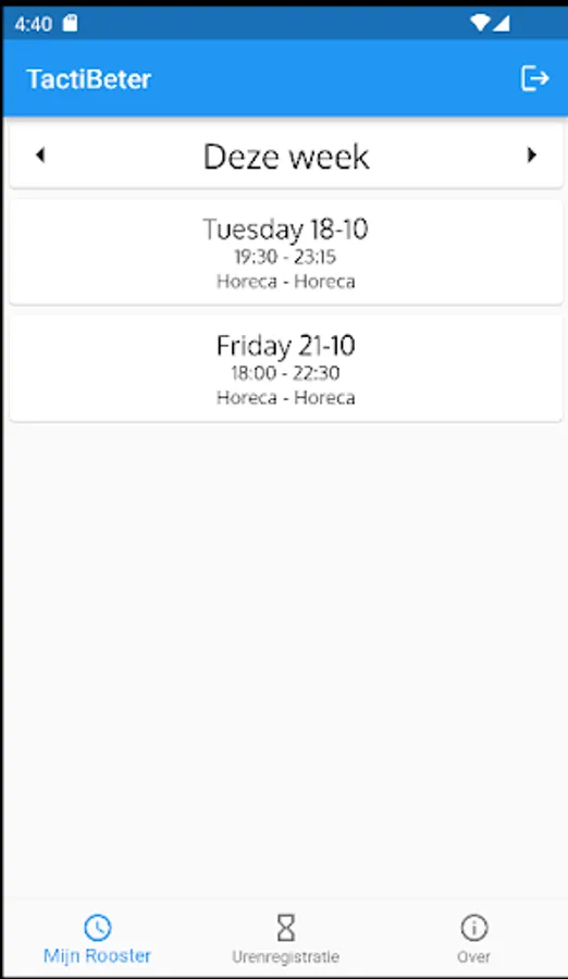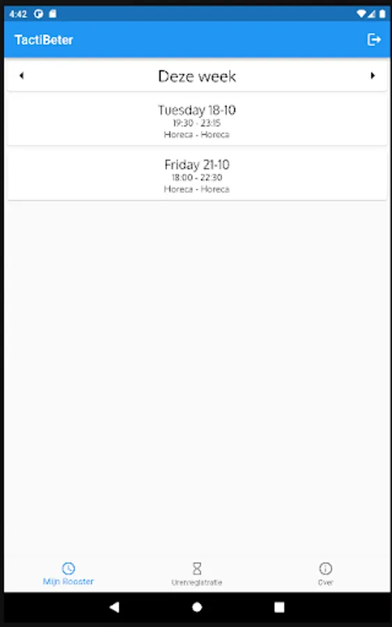 TactiBeter is an app that connects to TactiPlan. TactiPlan is a timetable app for companies. TactiBeter shows the data in a simple and straightforward way.