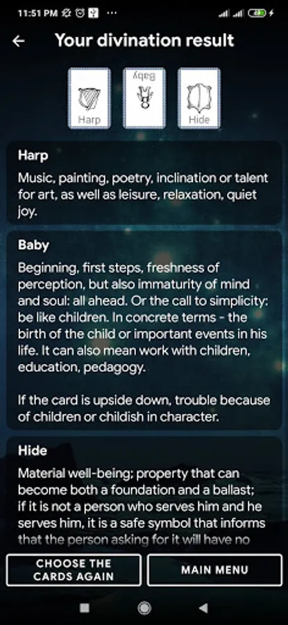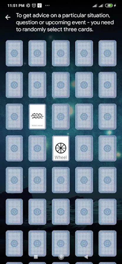 Trust fate, what will it tell you? Choose three of the forty proposed cards and you get a prediction.