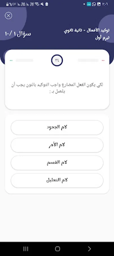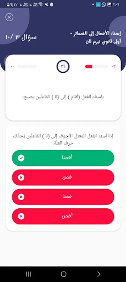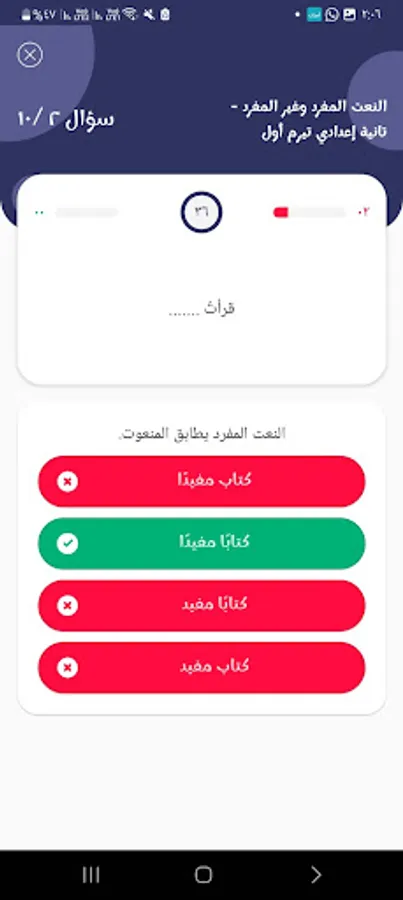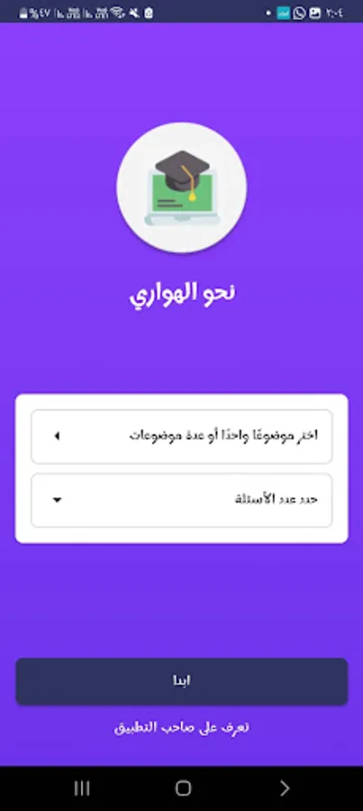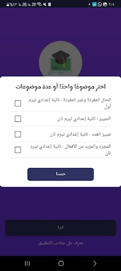The application allows the student to select the topics he desires before the start of each competition, and each question is attached to the lesson learned from it, so that the full benefit of the student is achieved.