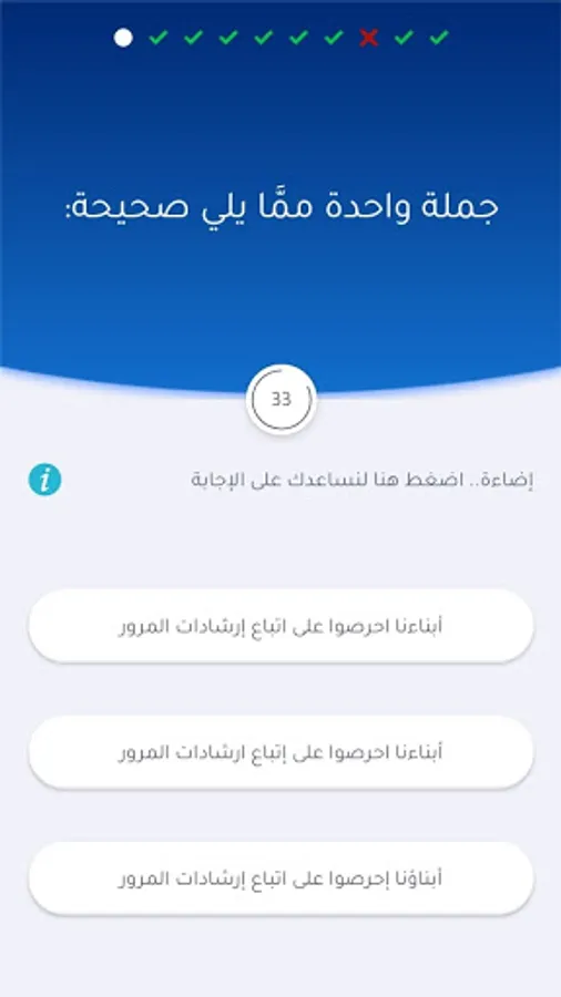 - The duration of the response to each question is 40 seconds .. After choosing the correct answer from among three options, the lesson learned from the question appears for a period of 10 seconds before moving to the next question, so that the contestant's full benefit is realized.