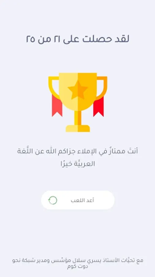 The application is a modest contribution from Mr. Yousry Sallal .. sponsored by Nahw.com website .. for the benefit of a neglected branch of Arabic, despite its importance, which is the (dictation) branch .. We hope that this application will help Arabic fans and lovers in general .. and (dictation) in a way. Special .. and to be a step .. followed by steps .. in order to restore honor to this golden branch .. dictation.