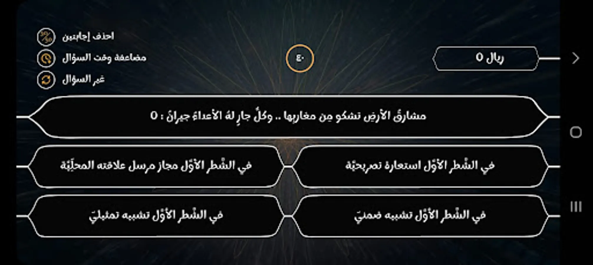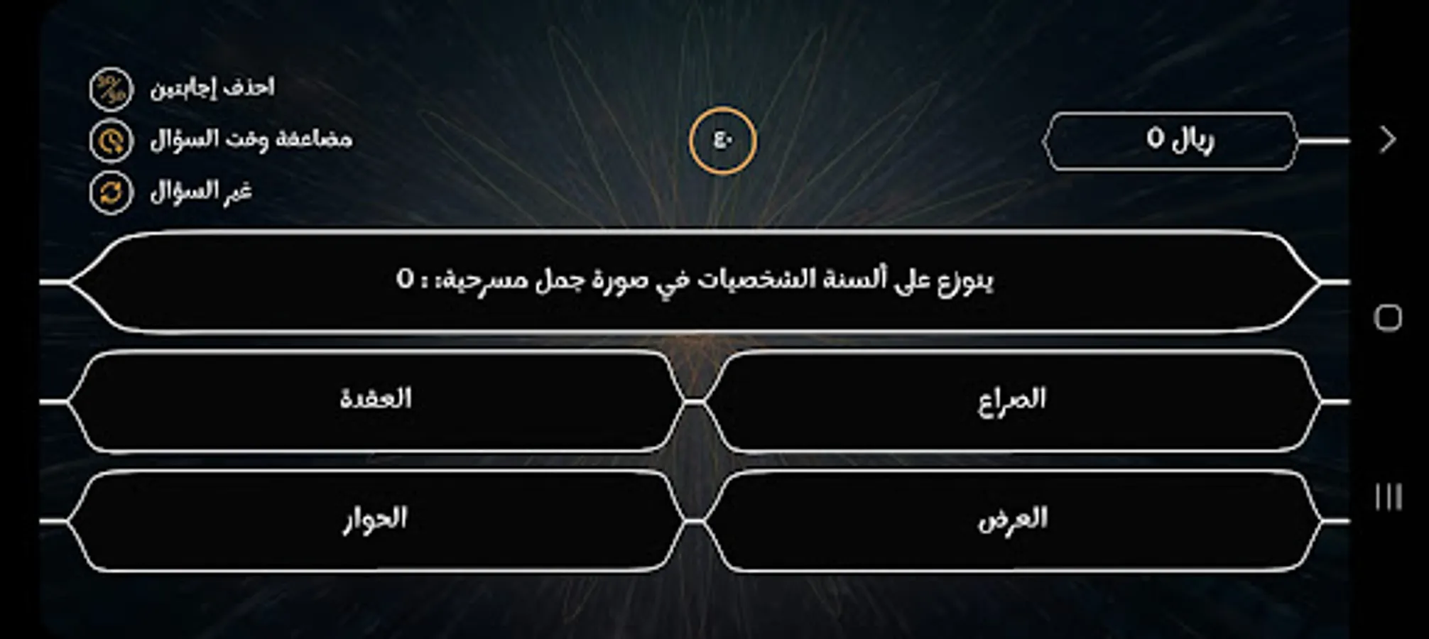 Each competition consists of 18 questions + 3 aids in each competition (changing the question - deleting two answers - doubling the answer time)
