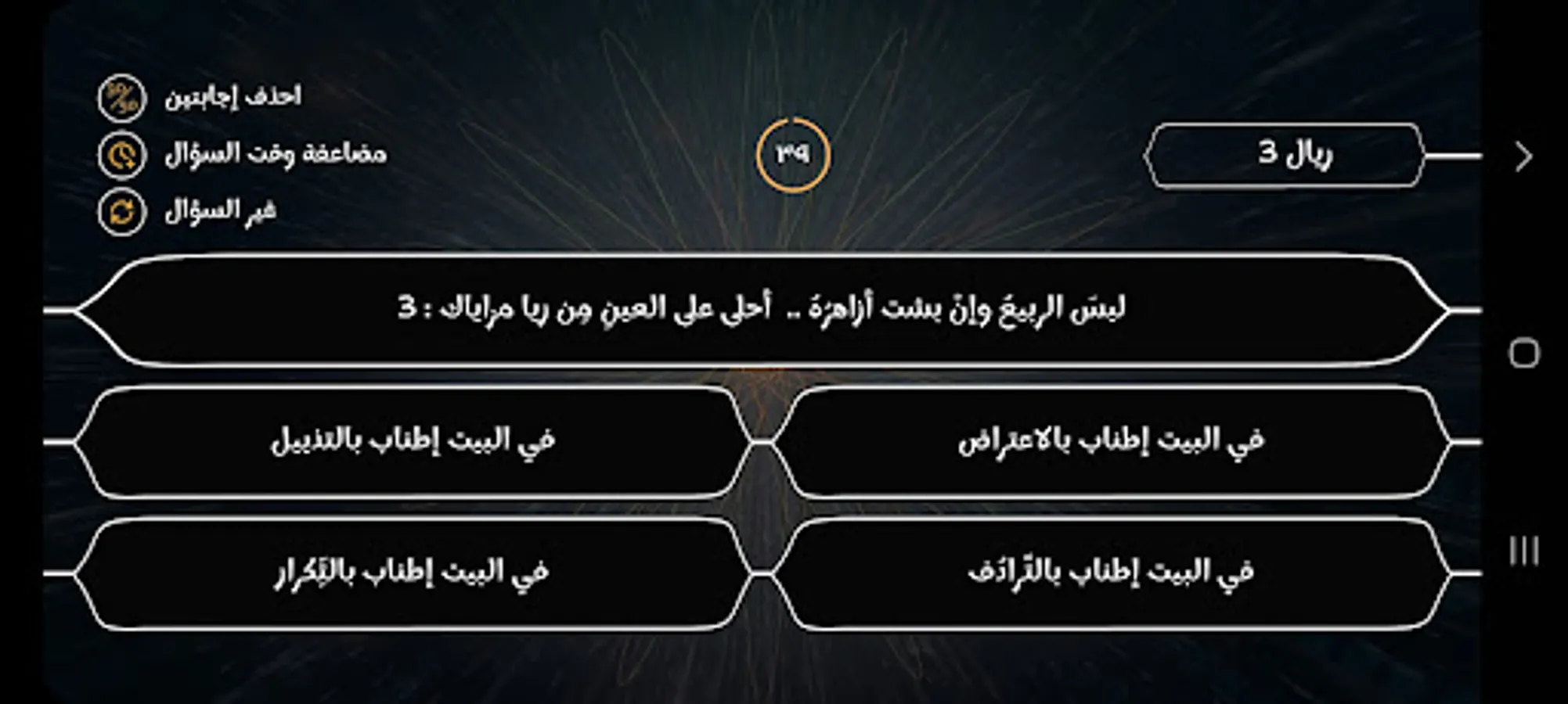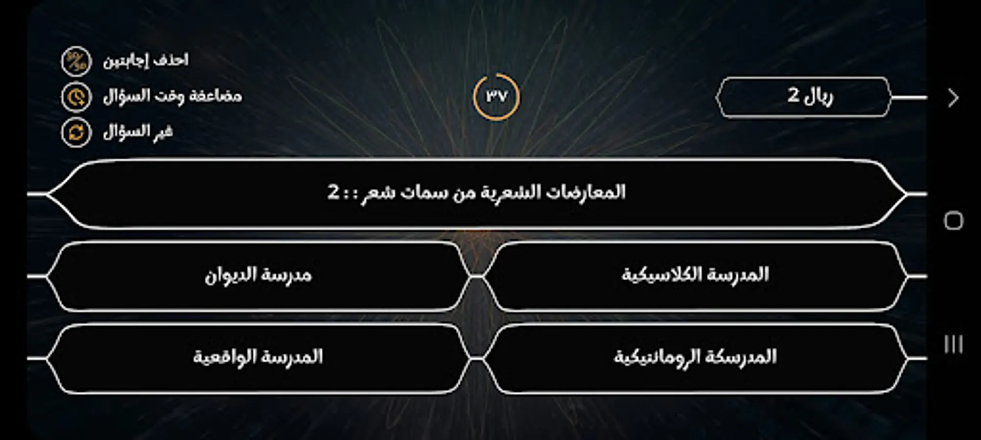 Each competition consists of 18 questions + 3 aids in each competition (changing the question - deleting two answers - doubling the answer time)