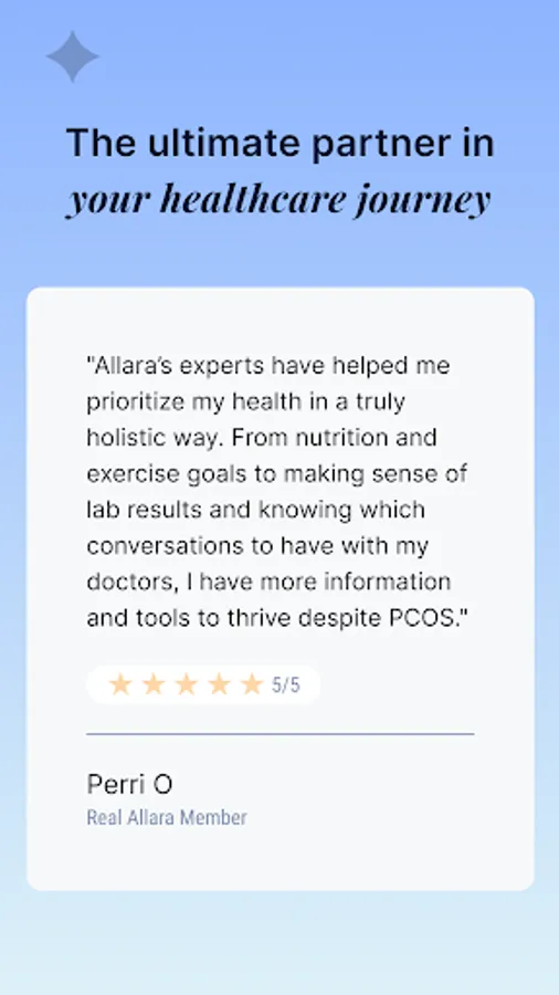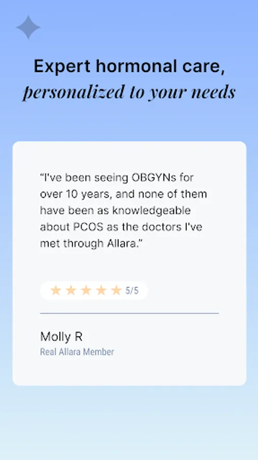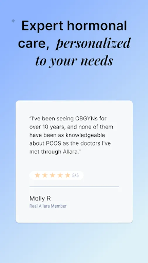 Allara provides comprehensive, compassion-first care to manage your hormonal health. We treat you *as a whole person* - not a set of symptoms.