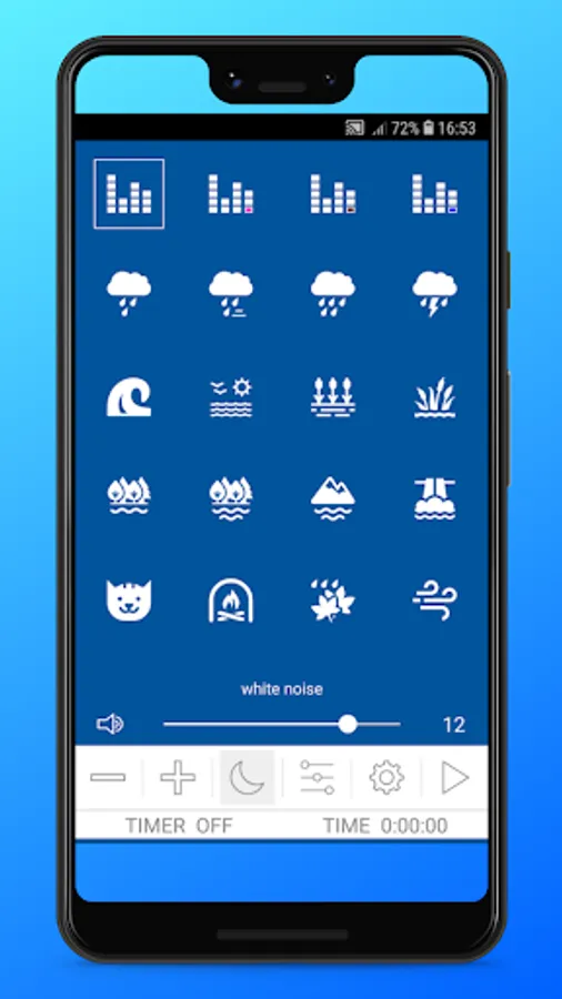 Simply select the desired sound or create your own mix using these HD sounds: