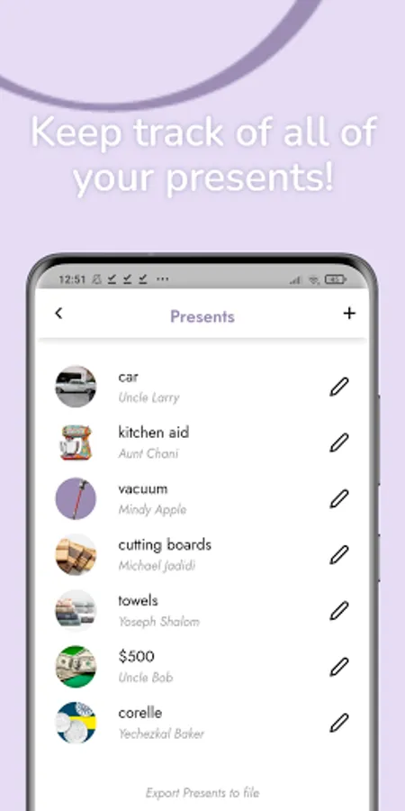 Kallahnder is designed with the Kallah in mind. From being on top of your hectic schedule to keeping track of your wedding gifts, Kallahnder has you covered.