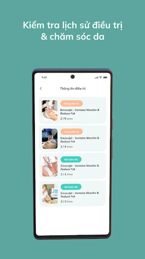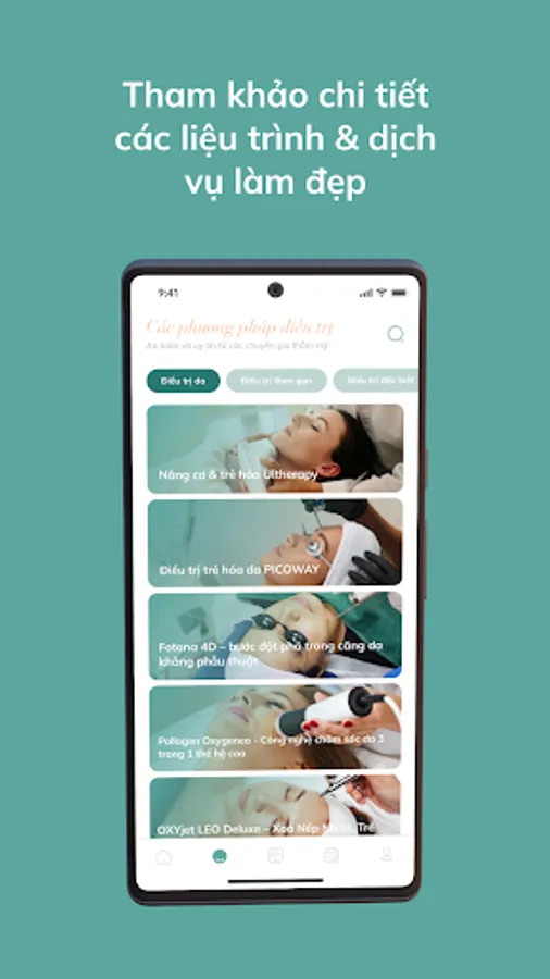 Skin care application, examination and monitoring of skin treatment at Trayce Beauty Clinic, with the following functions: