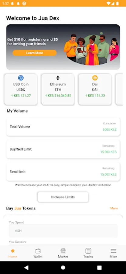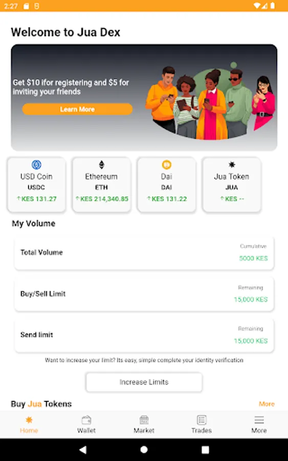 Jua is a hybrid exchange and also offers hosted digital wallet services by our partners. Our user base is able to post offers to either buy or sell Digital Assets in a variety of convenient methods