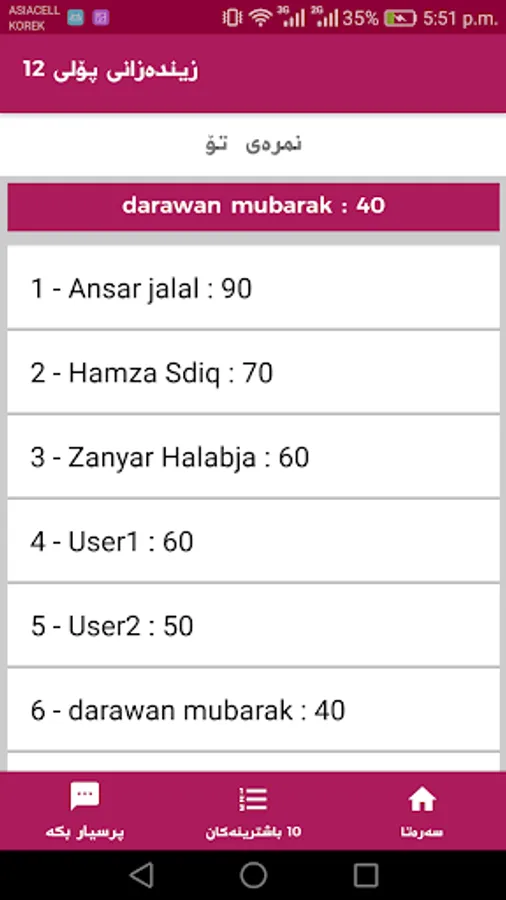 لیستی باشترین ١٠ خوێندكار كه تاقیكردنهوهیان كردووه دیاری دهكرێت