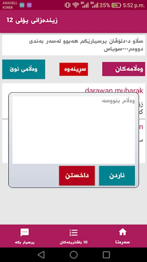 دهتوانیت ڕاستهوخۆ پرسیار له ئامادهكاری بهرنامهكه بكهیت و وهڵام وهربگریت