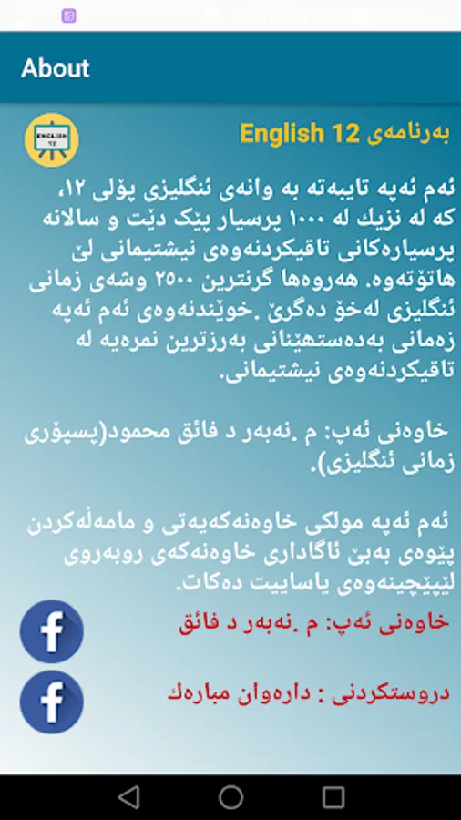 ئەم ئەپە تایبەتە بە وانەی ئنگلیزی پۆلی ١٢، کە لە زیاد لە ١٠٠٠ پرسیار پێک دێت و سالانە پرسیارەکانی تاقیکردنەوەی نیشتیمانی لێ ھاتۆتەوە. ھەروەھا گرنترین ٣٥٠٠ وشەی زمانی ئنگلیزی لەخۆ دەگرێ .خوێندنەوەی ئەم ئەپە زەمانی بەدەستھێنانی بەرزترین نمرەیە لە تاقیکردنەوەی نیشتیمانی.