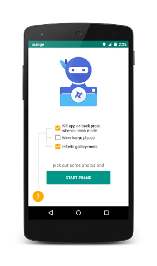 *Note that the app saves those stealth photos in a a directory called NinjaSnap. You will see it appear in your Gallery app or whatever you use too look at photos. I made this decision thinking maybe users would like to keep potentially funny photos of their victims.