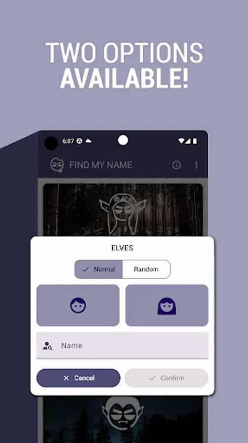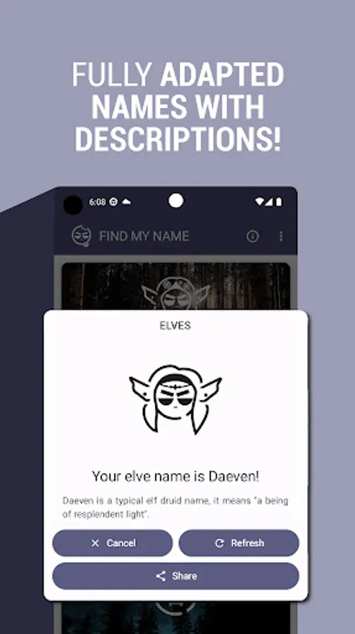 'Find my name' is a name search engine with which, based on your real name, you can find what your name would be in different categories such as fantastic beings (elves, orcs and dwarves), citizens of ancient civilizations (Vikings, Egyptians and Greeks), or fictional characters (saiyans, majins and retro aliens). It is also a random name generator from all these categories.