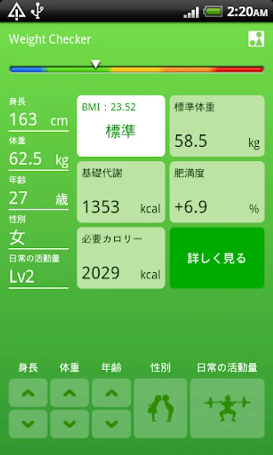 Some people in the diet, anyone who soon also, please take advantage of when you want to review objectively the weight of your own. When asked to enter the amount of activity of height, weight, age, sex, and day-to-day, to display BMI index, normal weight, beauty body weight, model body weight, degree of obesity, basal metabolic rate, caloric needs, a little indication other. Well, let's do our best.