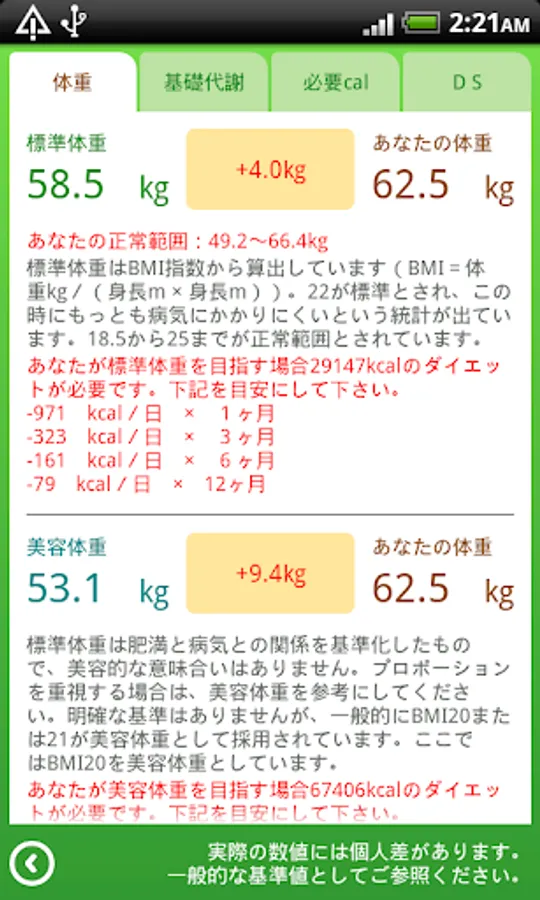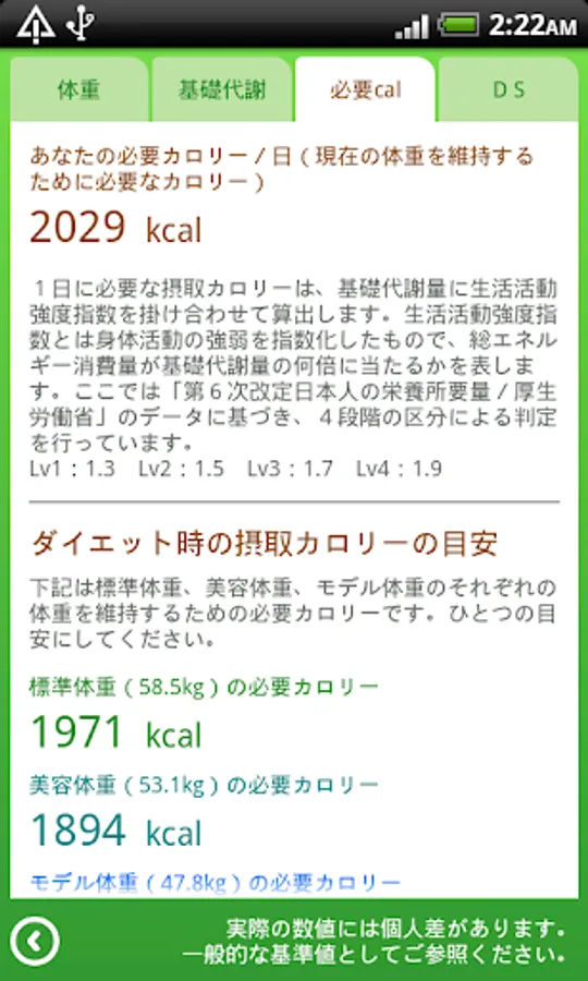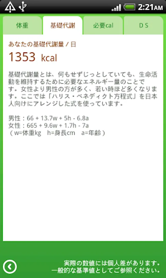 ※ For the calculation of basal metabolism, I'm using a formula that assumes the skeletal system of the Japanese.