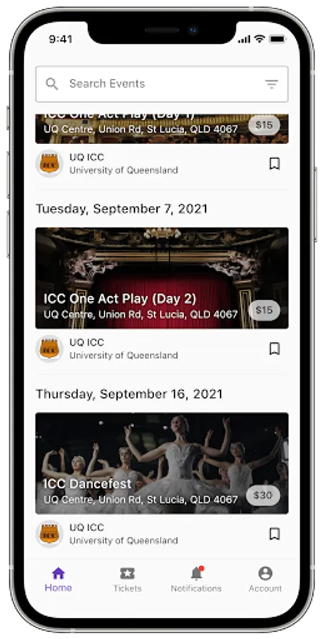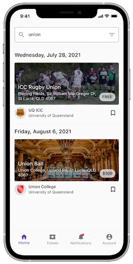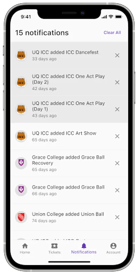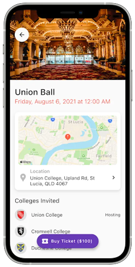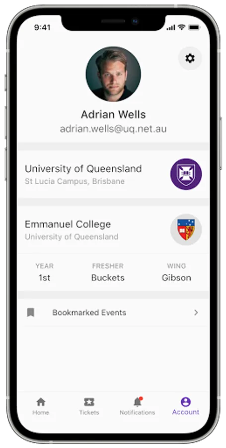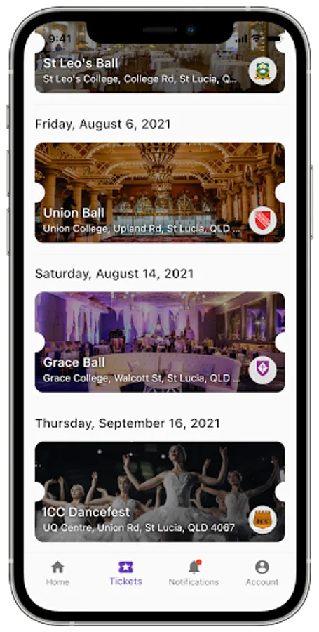 The app provides students of the University of Queensland's residential colleges with a directory of all events run by each of the colleges. It allows cultural, social and sports convenors of each college to list their own events and choose which other colleges are invited. Students receive notifications when new events are added and are able purchase tickets for the events. At the event, students use the app the display their ticket and convenors are able to validate tickets by scanning the generated QR code.