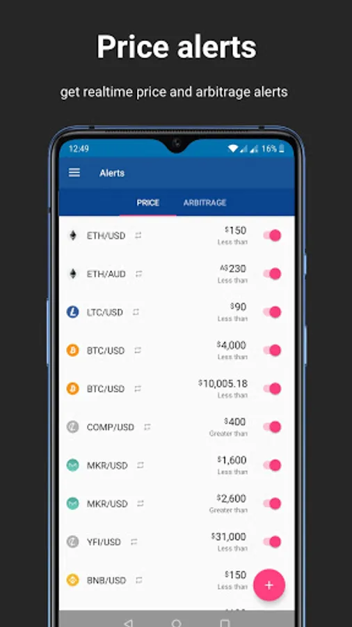 - Custom Price Alerts: Receive real-time alerts for your favorite cryptocurrencies and never miss a trading opportunity. Set individual thresholds for each coin to stay informed.
