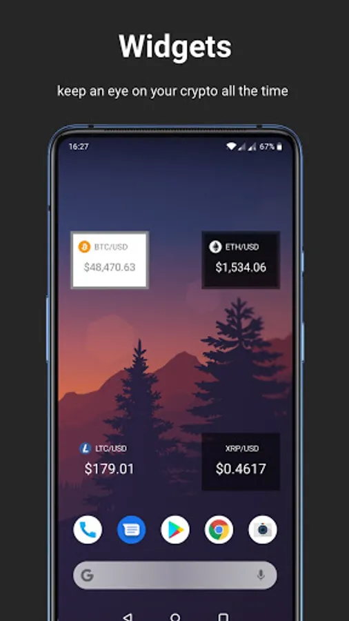 - Homescreen Widgets: Personalize your homescreen with customizable light and dark widgets for cryptocurrencies and exchanges, updated at your desired frequency. Stay informed without even opening the app.