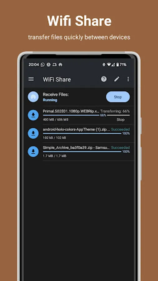 - Transfer files between Android devices on the same Wi-Fi offline without internet