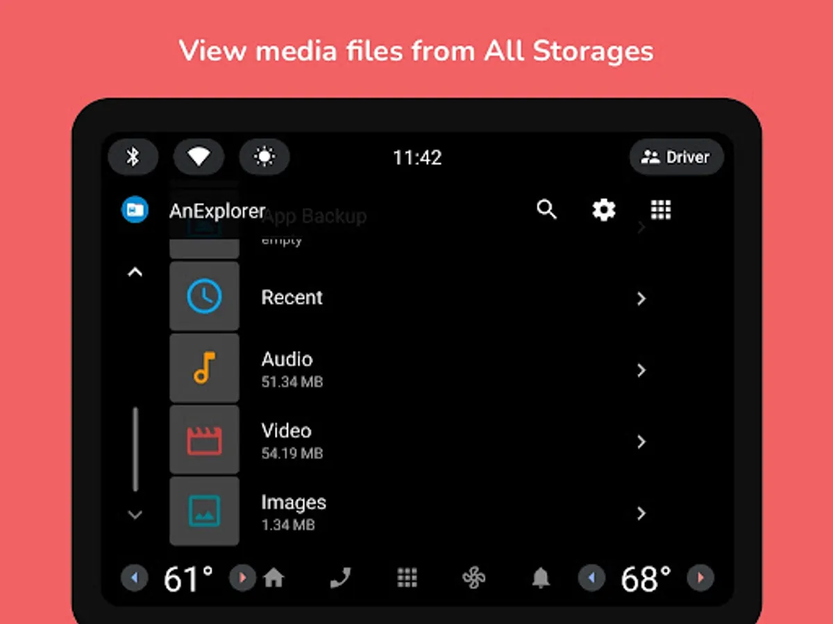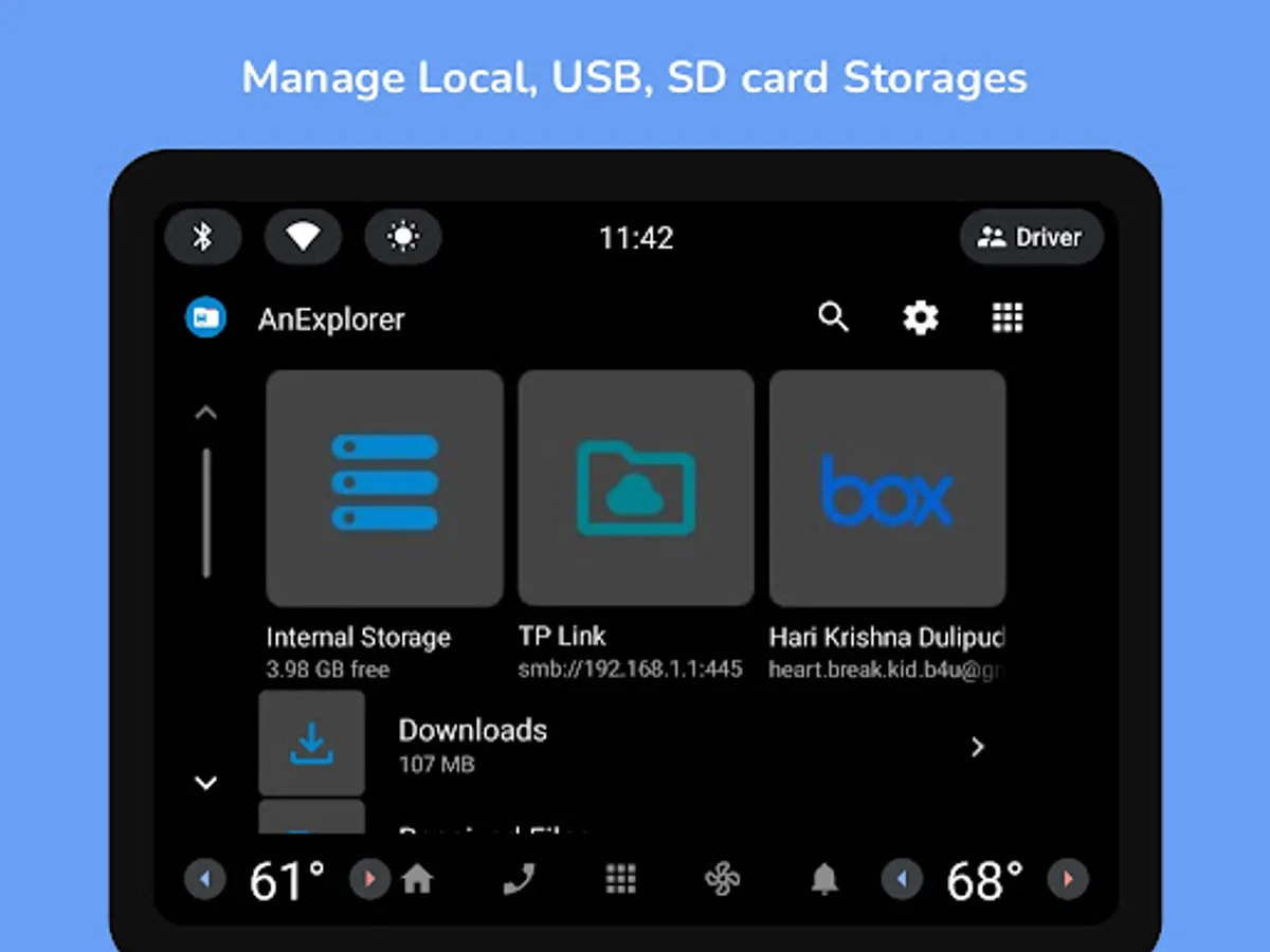 • Manage USB drives and internal storage directly from your car