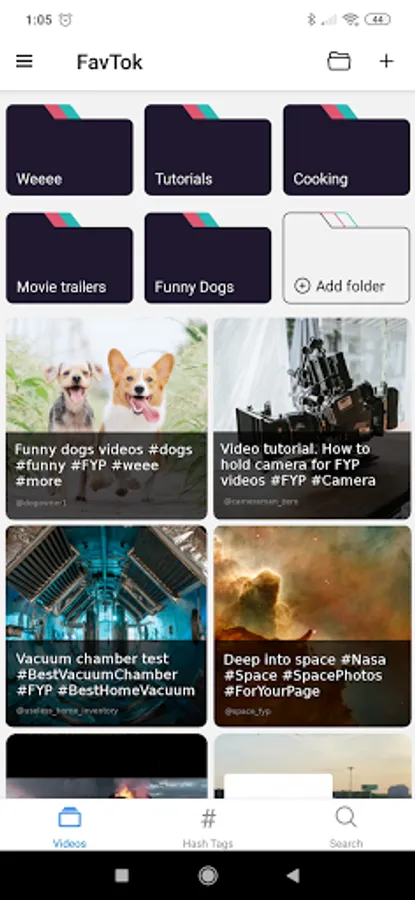 Does your liked videos page look like the endless messy pile of clips? Searching for a movie trailer, recipes, DIY or another tiktok-video, that you watched 3 month ago and which you needed to rewatch right now takes quite some time? Favly will save you time - it allows you to organize your tiktok-video collection in hierarchical order, allows you to search your collection by tags, description, authors etc. It suites best to save important and useful videos. Create your personal ordered collection of videos with Favly.