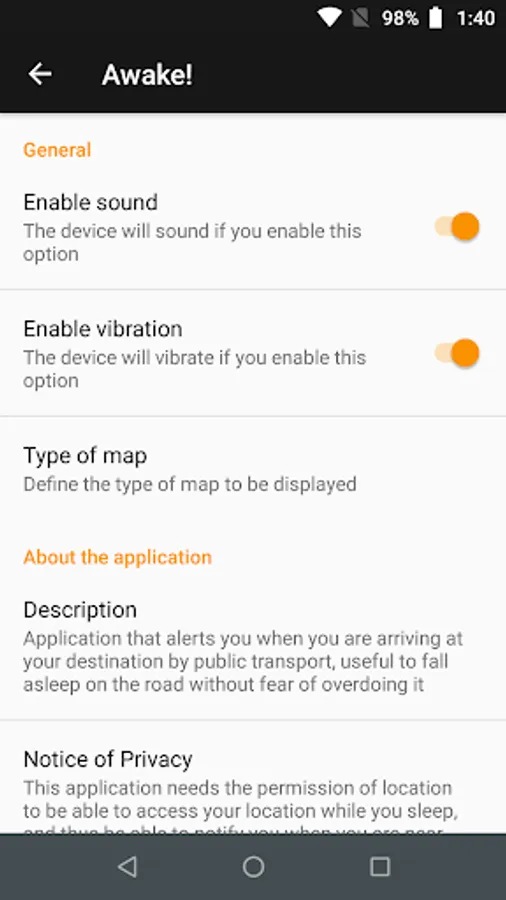 Are you afraid to fall asleep on public transport? With this application you will be able to wake up at the exact moment, as it alerts you when you are arriving at your destination, useful to fall asleep on the road without fear of passing.