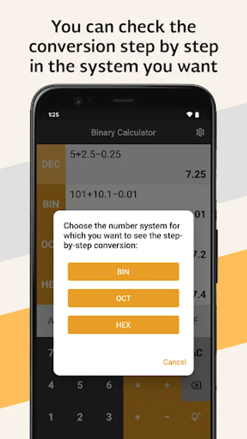 Application that performs basic operations (addition, subtraction, multiplication and division) in binary, octal, decimal and hexadecimal systems.
