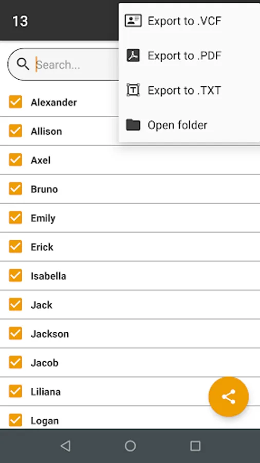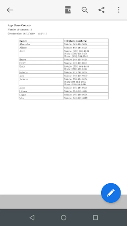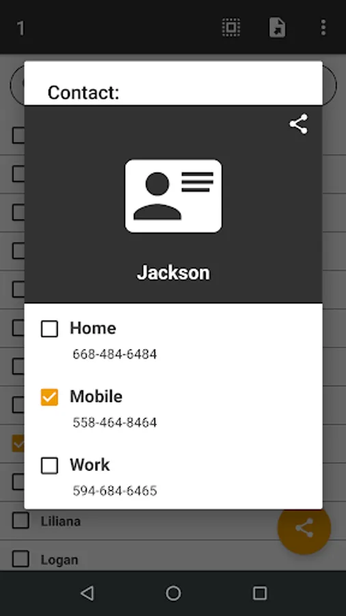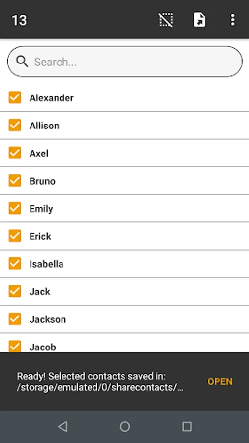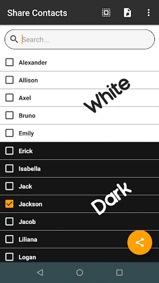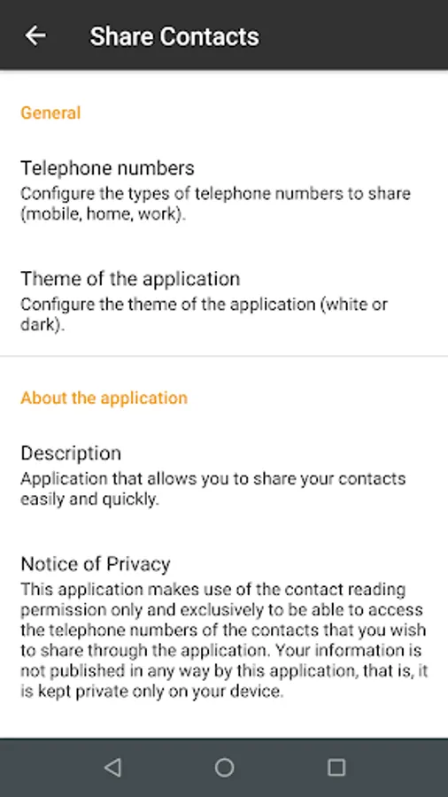 With this application you can easily and quickly share your contacts, you just have to choose the contacts you want to share from a list and choose the medium for which you want to share them.